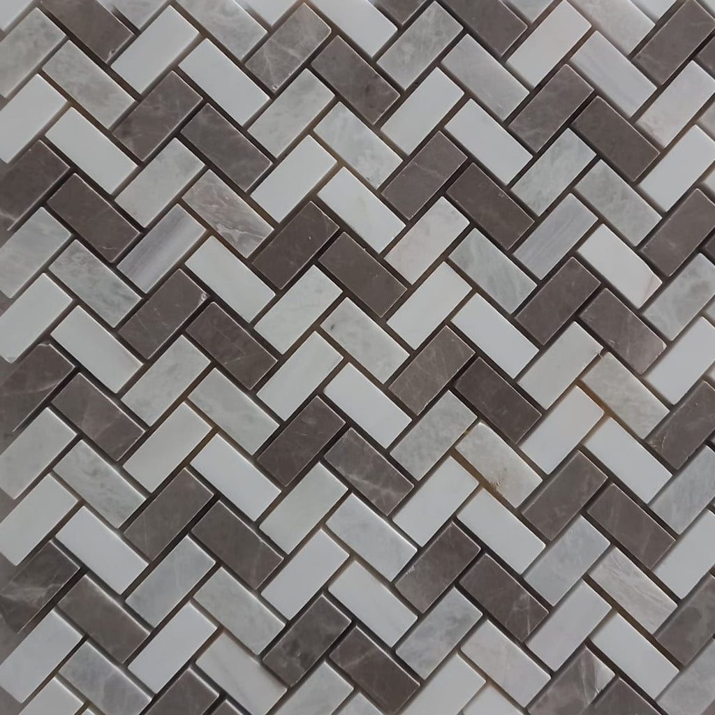 Elevate your space with the BEIGE & BROWN Herringbone 12"x12" Honed Mosaic. This elegant tile features a subtle blend of beige and brown tones arranged in a timeless herringbone pattern, creating depth and texture with a smooth honed finish. Ideal for adding warmth and sophistication to any room, it’s perfect for walls, backsplashes, or accent floors. Durable and easy to maintain, this mosaic tile brings lasting style and refined charm to your home or commercial project.