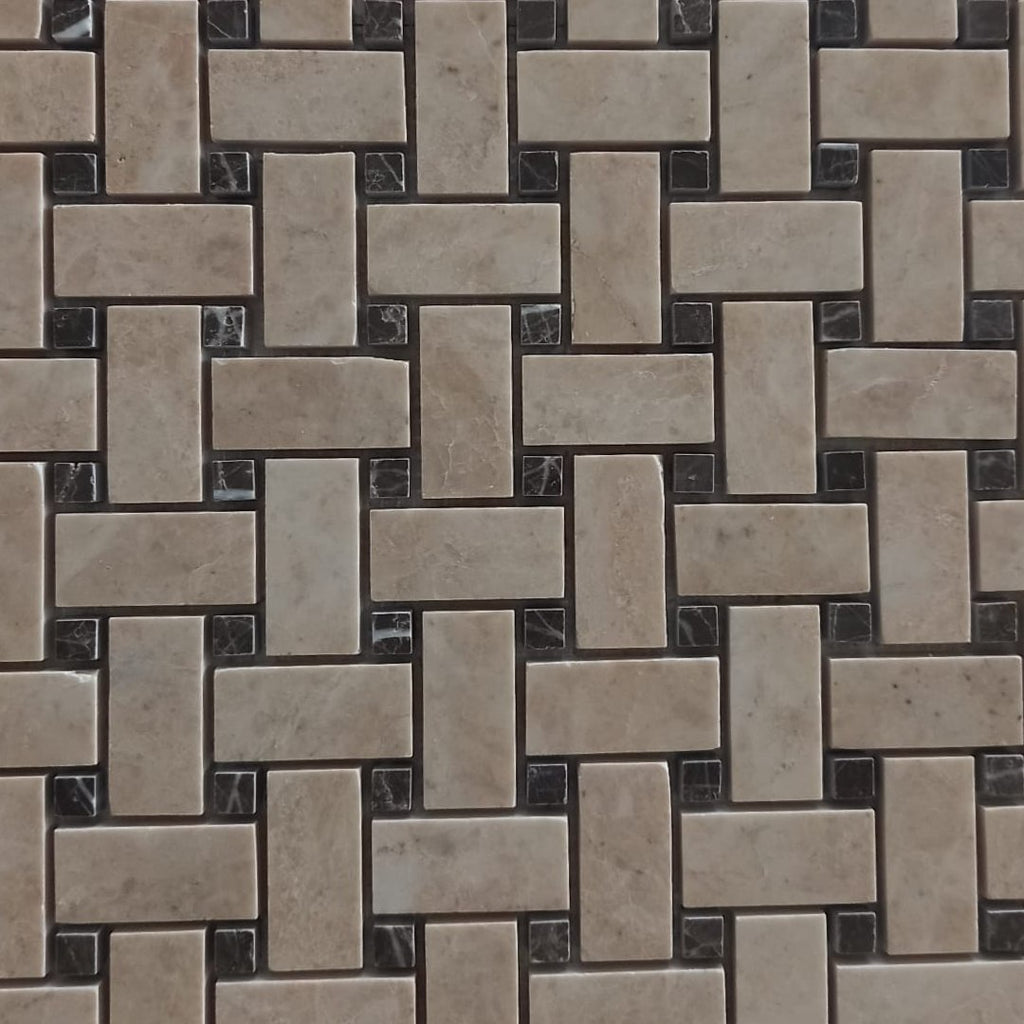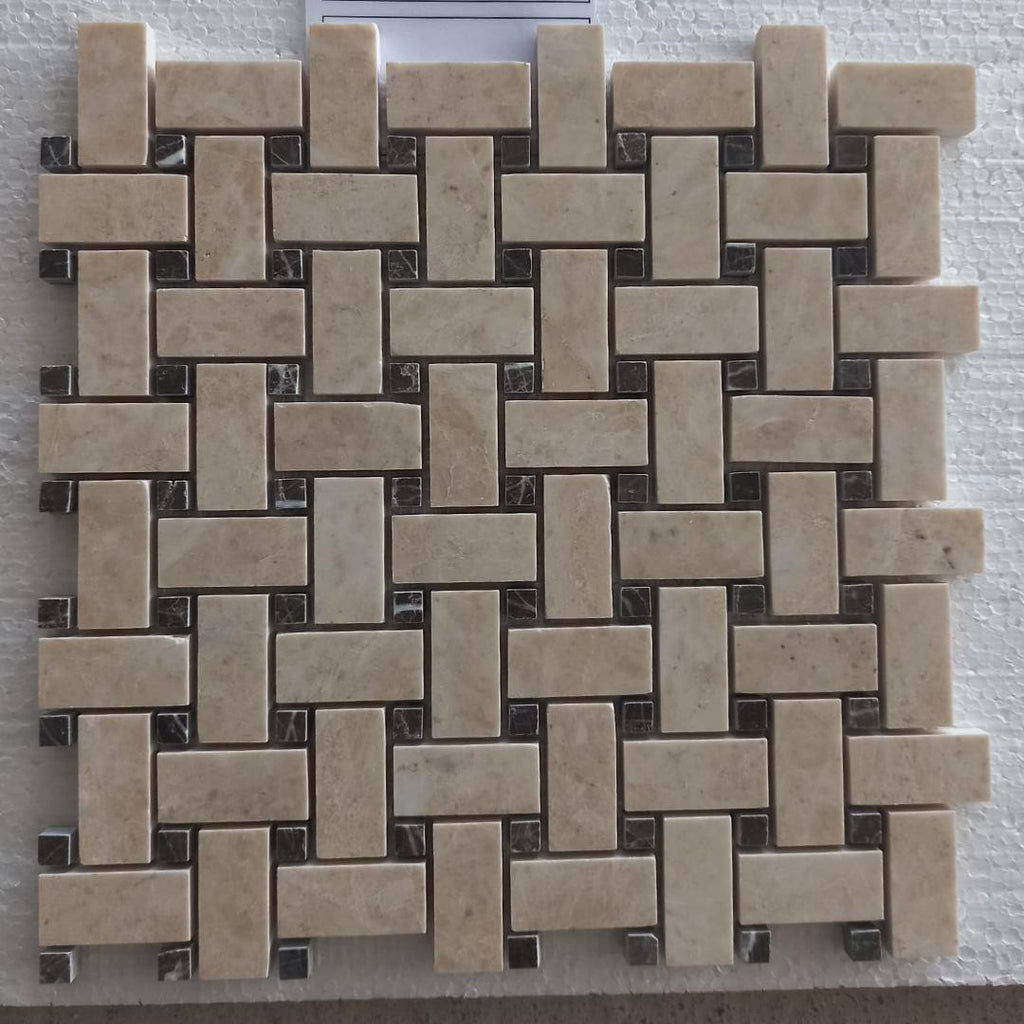 This unique mosaic combines different shades and textures of marble to create an elegant and visually intriguing design, perfect for residential and commercial areas seeking a touch of exclusivity and sophistication.