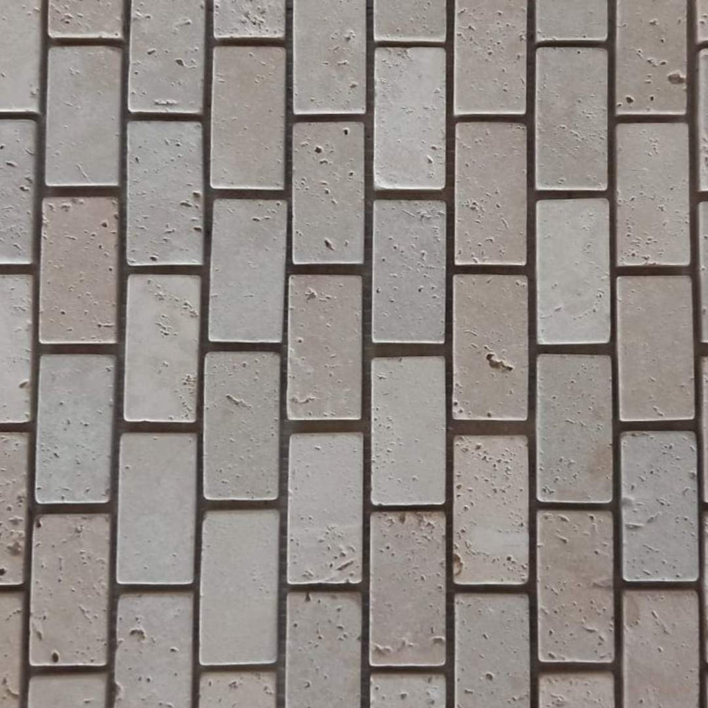 Elevate your space with the timeless charm of the TRAVERTINE BEIGE Brick 1"X2" Tumbled Mosaic. Measuring 1" x 2" on a convenient 12" x 12" mesh backing, this tumbled mosaic combines durability with natural elegance. Its warm beige tones create a versatile backdrop perfect for kitchens, bathrooms, or accent walls, adding both texture and sophistication effortlessly. Easy to install, it transforms ordinary surfaces into inviting, stylish focal points that stand the test of time.